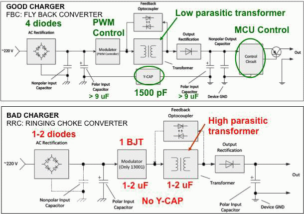 設(shè)計用于配合特定電話工作的OEM廠商的充電器具有較嚴(yán)格的噪聲規(guī)格,同時,在充電電路中廣泛采用USB連接器為配件市場創(chuàng)造了巨大的機(jī)會。為了在其中進(jìn)行競爭,配件廠商充分地降低充電器成本。采用低成本電子器件的充電器給手機(jī)充電將注入很多噪聲到觸摸屏,而導(dǎo)致其很可能無法使用。