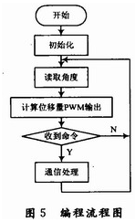 軟件編程主要包含3個模塊:PWM控制電流輸出模塊、RS 485通信模塊、MLX90316的SPI通信模塊,編程流程如圖5所示。PWM控制電流輸出模塊主要通過改變PWM的占空比來調節電流的大小。RS 485通信模塊主要用來接收上層系統的指令并根據指令將數據回傳。MLX90316的SPI通信模塊主要用于磁敏角度的讀取,SPI的通訊過程為:主控端先輸出1個0xAA以及1個0xFF作為通信起始信號,然后接著輸出8個0xFF,而從端會同時輸出2個0xFF、4個字節的角度信號以及4個0xFF,從而完成一次數據通訊。