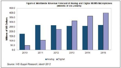 隨著幾家新廠商的進入,2011年上述局面發生改變。例如,Akustica和意半導體專門致力于數字MEMS麥克風,2011年成為強大的可供選擇的批量供應商,而且其價格策略比較激進。