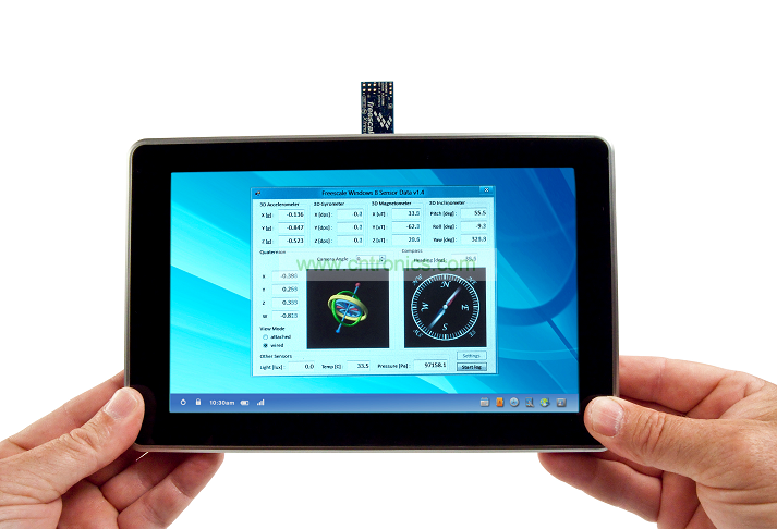 飛思卡爾12軸傳感器平臺包括 Xtrinsic MMA8451Q 3軸加速計、Xtrinsic MAG3110 3軸磁力計、Xtrinsic MPL3115A2精密高度計、壓力和溫度傳感器以及一個模擬環境光傳感器。它還提供多種兼容的陀螺儀可供選擇。使飛思卡爾從競爭對手中脫穎而出的是另外 集成了飛思卡爾ColdFire+ MCF51JU128VHS微控制器。 ColdFire器件充當傳感器樞紐,再加上飛思卡爾傳感器融合軟件,能高效地整合、配置和處理傳感器數據,滿足Windows 8操作系統的要求。參考平臺注重待機功耗、整體功耗和成本效益,使用標準HID驅動器通過USB與PC主機進行通信。