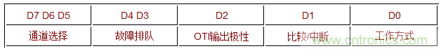 D1 用于設置OTI的工作方式。0表示采用比較方式工作,即當環(huán)境溫度超過TOTI時觸發(fā)OUT輸出,其輸出電平一直保持到環(huán)境溫度降至THYST;1表示采用中斷方式工作,即當環(huán)境溫度超過TOTI的觸發(fā)OTI輸出,其輸出電平將一直保持到下一次讀操作,而在這期間,即使環(huán)境溫度降到THYST,輸出電平也不翻轉;
