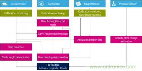 慣性傳感器、磁力計和壓力傳感器是航位推算應用中必不可少的傳感器組件,用之可大幅提升導航性能,這些器件的功耗必須極低,這樣才能始終保持開啟模式并提供數據用于航位推算應用。實現隨時隨地定位的目標離不開高品質的MEMS傳感器和高性能的行人航位推算算法。本文主要討論各種行人航位推算算法上需要用到的傳感器組件的數學表述,以及可用性和可靠性更高的PDR行人航位推算算法的測試結果。