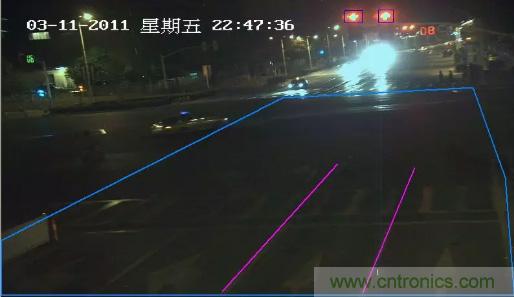 在需要重點監測的路段,安裝一臺或多臺(如4臺)數字式攝像機,將一定范圍的交通圖像,經過一個圖像處理硬件,輸入計算機顯示器;通過互動控制軟件,用鼠標操作在屏幕交通圖像上,設定和疊加檢測區,其尺寸、數量可隨時調校。操作設定一旦建立,車輛經過檢測區,就會產生檢測信號,經過分析和處理(軟件),可得到交通量、平均車速、占有率、車頭間距隨和排隊長度等各種參數。在軟件支持下,還可對不同檢測區的信號進行邏輯處理(與、或、非等),對交通情況作出正確判斷。在具有交通事件門限值和算法軟件的配合下,可對交通事件的發生作出判別,發出預警信號。與其他交通控制軟件結合,還可對城市交叉路口的交通信號控制,作出決策。由于檢測元件是在屏幕上畫出來的,在布置上有很大的靈活性,檢測項目也可視需要而增設,功能存在巨大開發潛力。