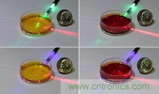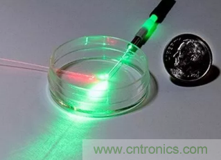 圖1:美國和澳大利亞的研究人員開發(fā)了一種非侵入性、即時測量液體pH值的方法,該方法使用了激光光源、光纖探頭以及一些基本的化學試劑。