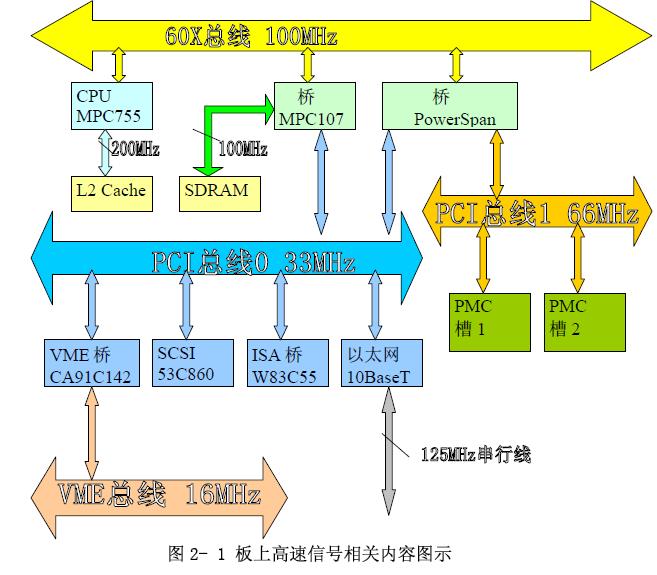 我們設(shè)計的是基于PowerPC的主板,主要由處理器MPC755、北橋MPC107、北橋PowerSpanII、VME橋CA91C142B等一些電路組成,上面的高速信號如圖2-1所示。